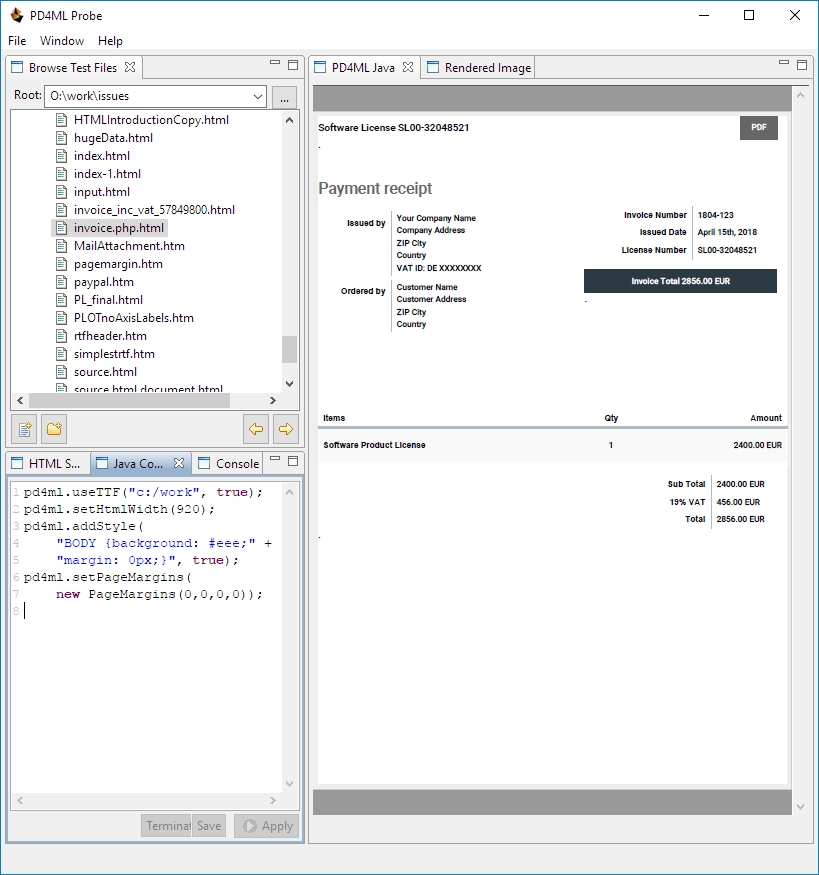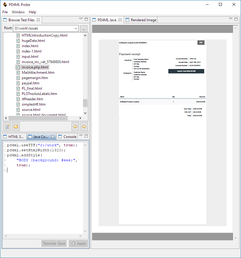 First download the most recent version of PD4ML JAR file from our Maven repository, save it to a directory of your choice and make sure there is a JRE v1.7+ installed on your workstation/server.